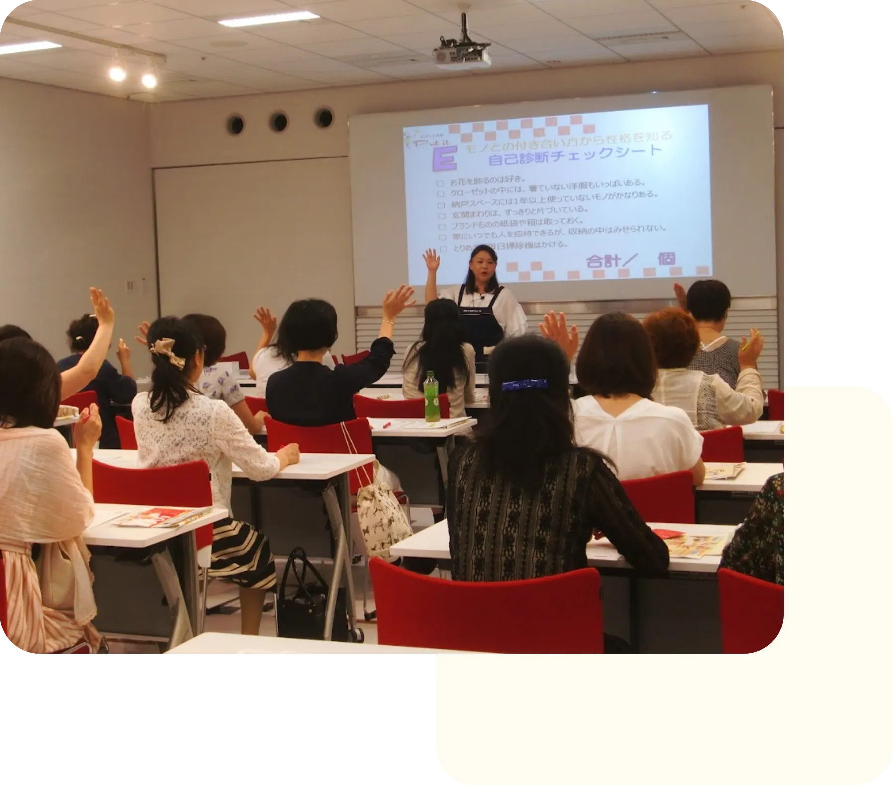 習い事感覚で楽しく身につくお片づけ教室から、合格率ほぼ100%の整理収納アドバイザー2級認定講座やホームステージャー2級認定講座を行っております。実践的に身につくカリキュラムで、整理力が成長します。まずはお気軽にご相談ください。